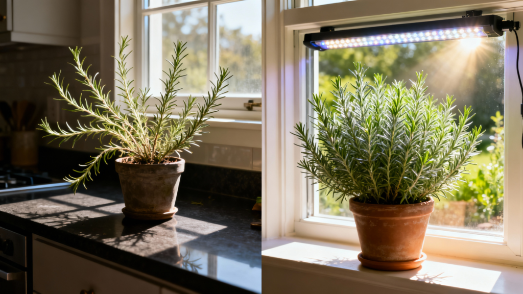 Your kitchen counter might look cute, but rosemary needs serious sun. Not “bright-ish.” Actual sun.