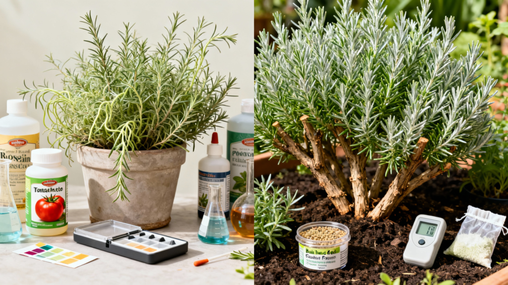 Rosemary likes slightly alkaline to neutral soil (pH ~6.5–7.5). If your soil runs very acidic, add a bit of garden lime. Don’t go full chemistry set—just tweak if growth seems stunted.