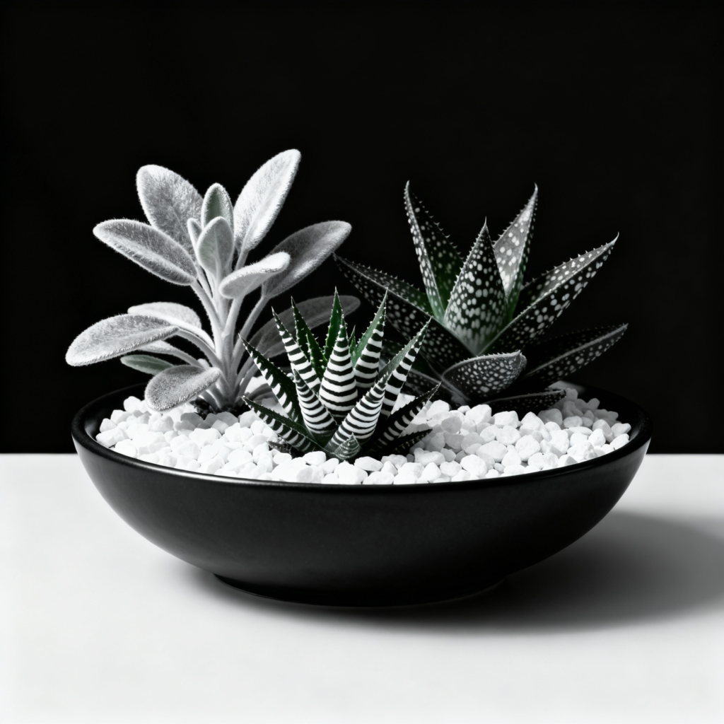 Use a matte black shallow bowl and white gravel. Minimal effort, maximum chic.