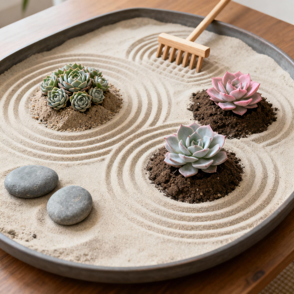 Yes. Nestle a few low growers like Sempervivum and Graptopetalum into mounds of gritty soil, then surround with fine sand. Add two smooth stones and you’re basically a calm person now.