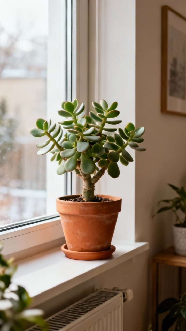 Jade prefers 60–80°F (16–27°C). It can handle brief dips into the 40s, but frost will ruin its day. Keep it away from cold drafts and scorching heaters.