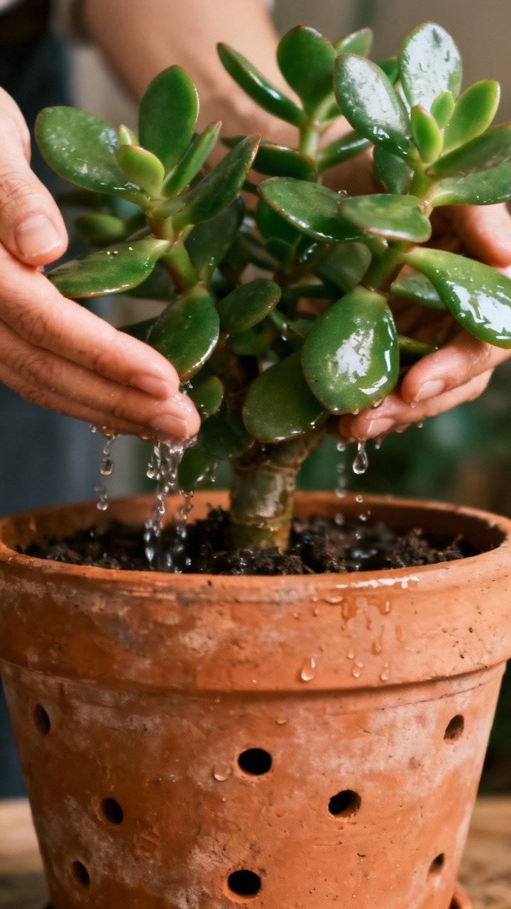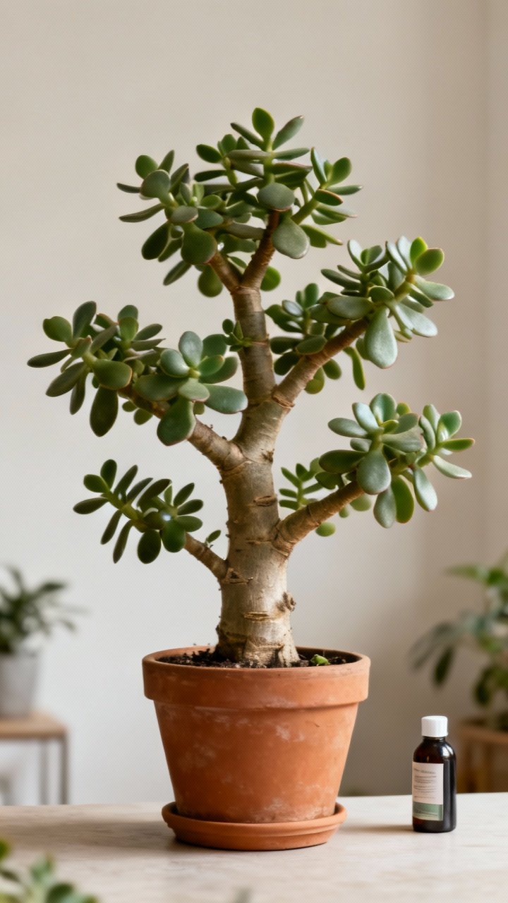 Jade plants don’t need a buffet. Feed lightly during spring and summer with a balanced, diluted fertilizer (half-strength) once a month.